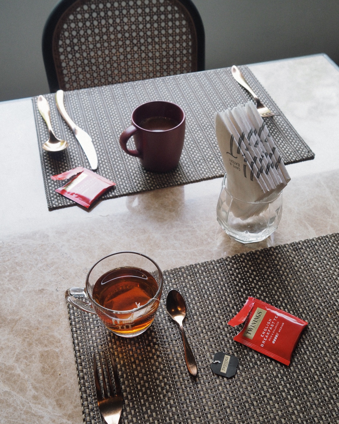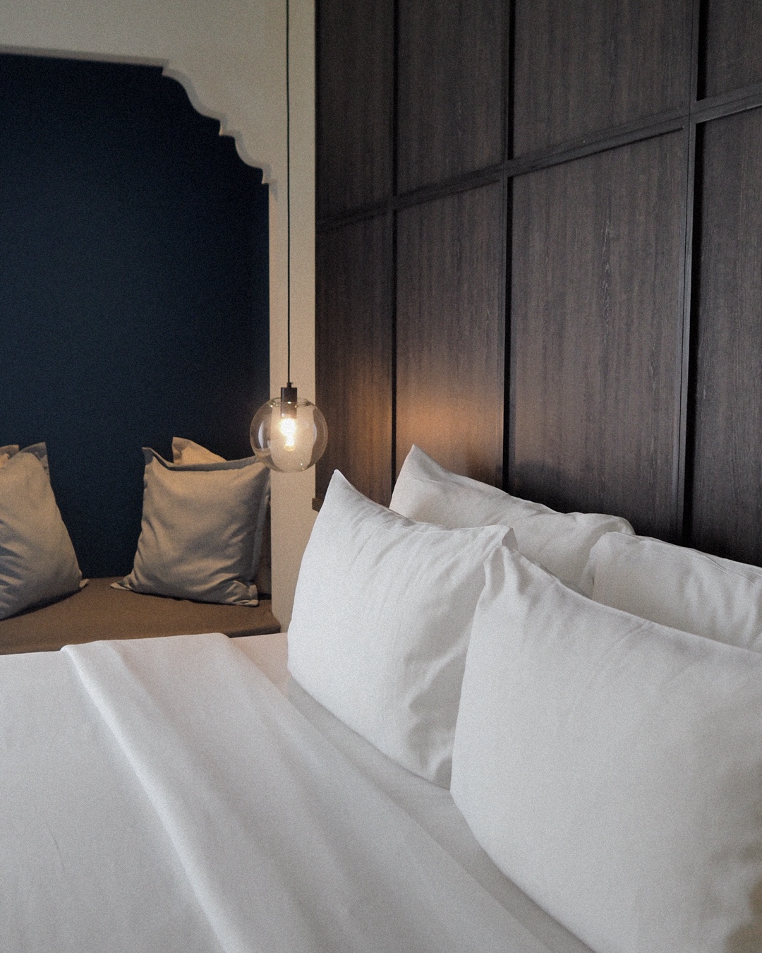 Staying on the top floor allowed me to see both the pool below and the sky above. I discovered this magic one evening, just as I was about to leave for a walk. I watched the sunset streaming through the window, casting warm colors across the room. I thought I was meant to leave earlier, yet it turned out to be the perfect moment to linger a little longer in the room.